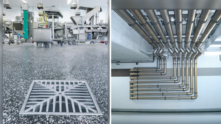 Våra industribrunnar erbjuder säker vattenavrinning i produktionslokaler, varuhus, livsmedelsbutiker, professionella kök och matmarknader.